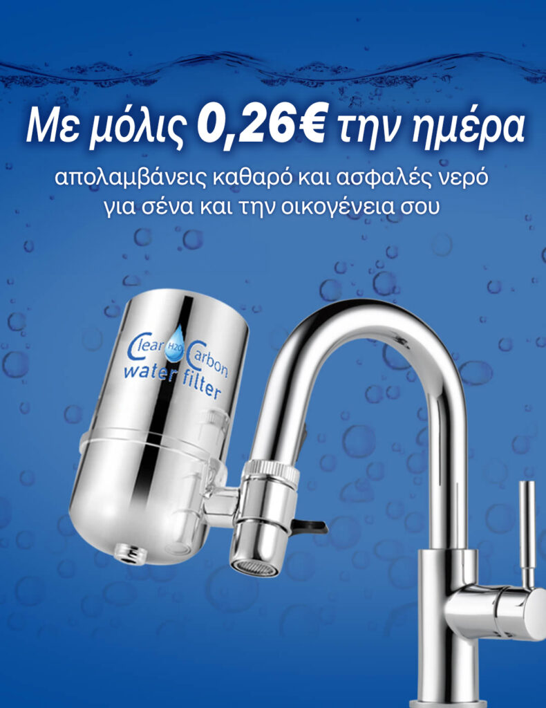 Ανακαλύψτε την απλότητα και την απόλυτη ασφάλεια στο νερό που πίνετε με το CLEAR CARBON WATER FILTER, και απολαύστε καθαρό, φρέσκο νερό με κάθε γουλιά!